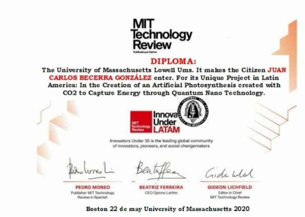 Becerra González se propuso crear una fotosíntesis artificial que sirve para captar el dióxido de carbono y transformarlo en energía, ya que catalizando el hidrógeno con un sistema electrónico llamado nanotecnología se captan las partículas y se acumulan en un sistema térmico, basado en un diagnóstico con una programación de un lenguaje de algoritmo dentro de una placa electrónica, y eso fue lo que lo hizo merecedor del reconocimiento, explica el científico.